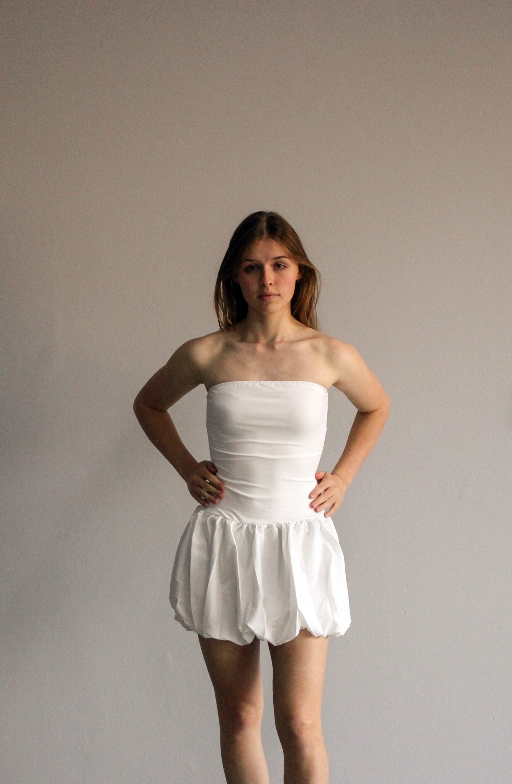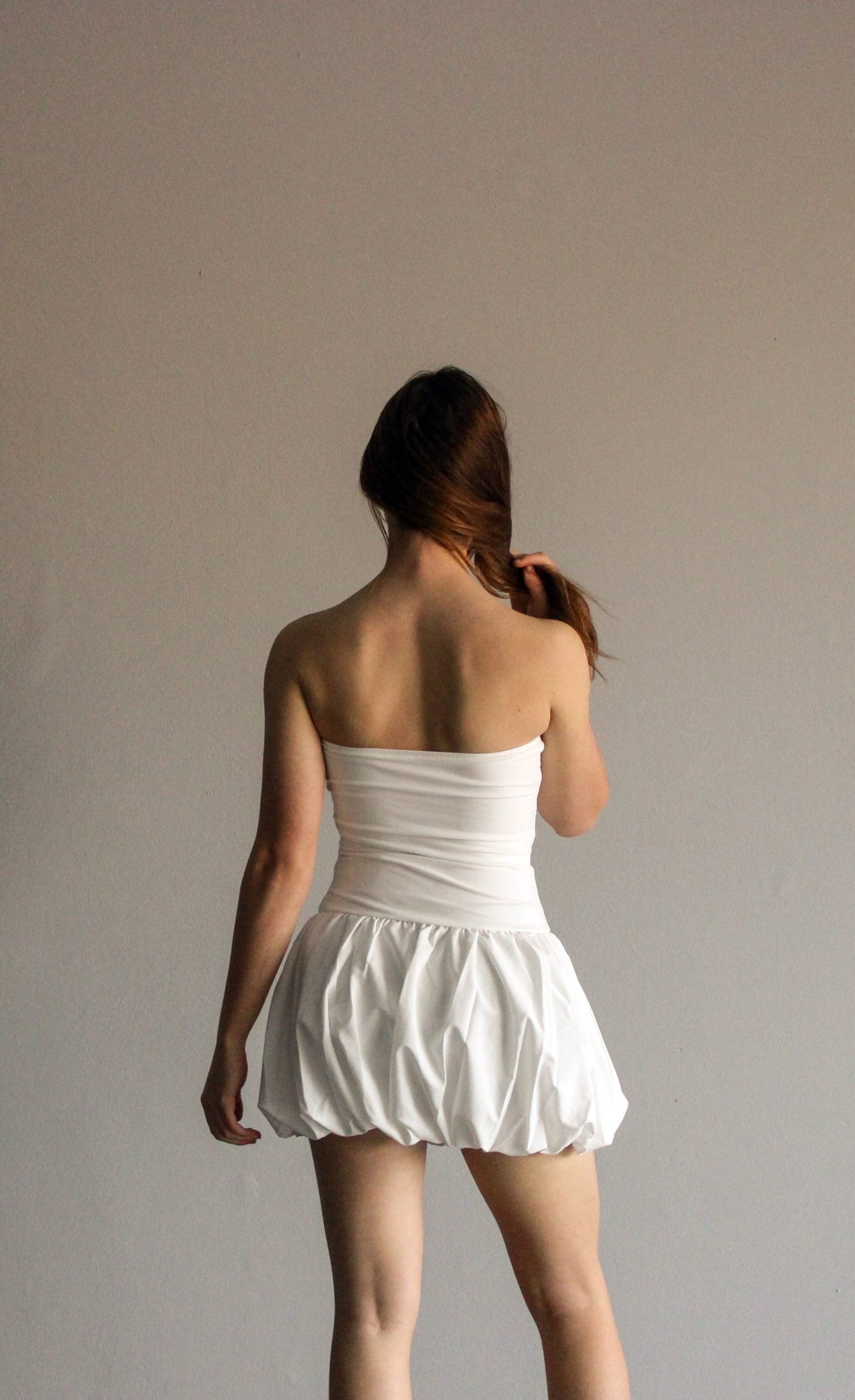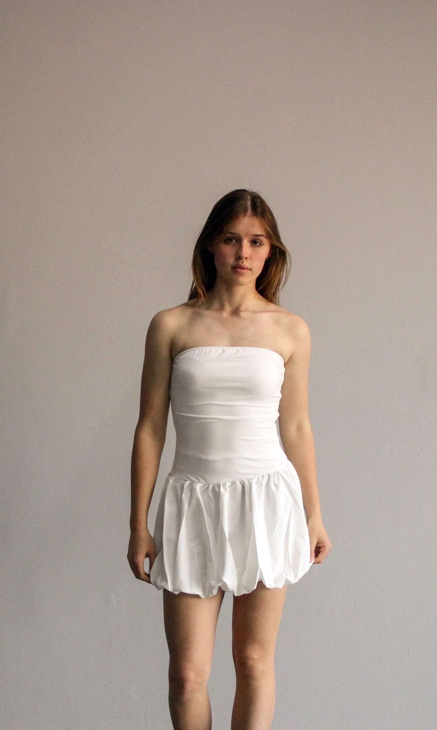Ruffled Bubble Skirt Dress – White