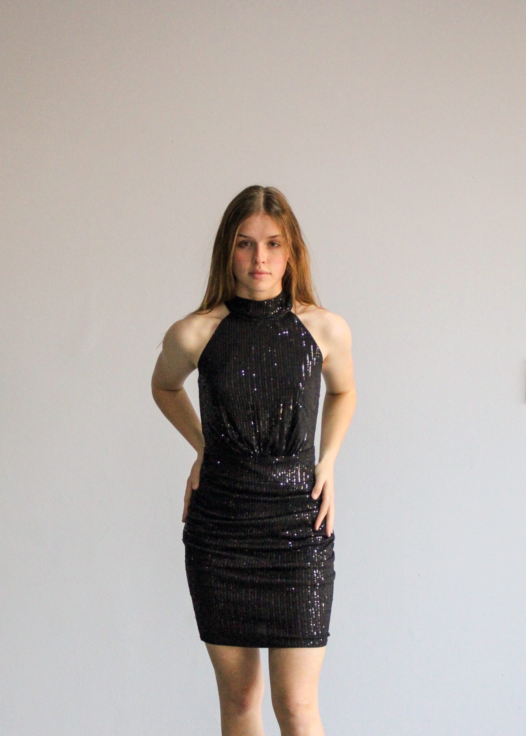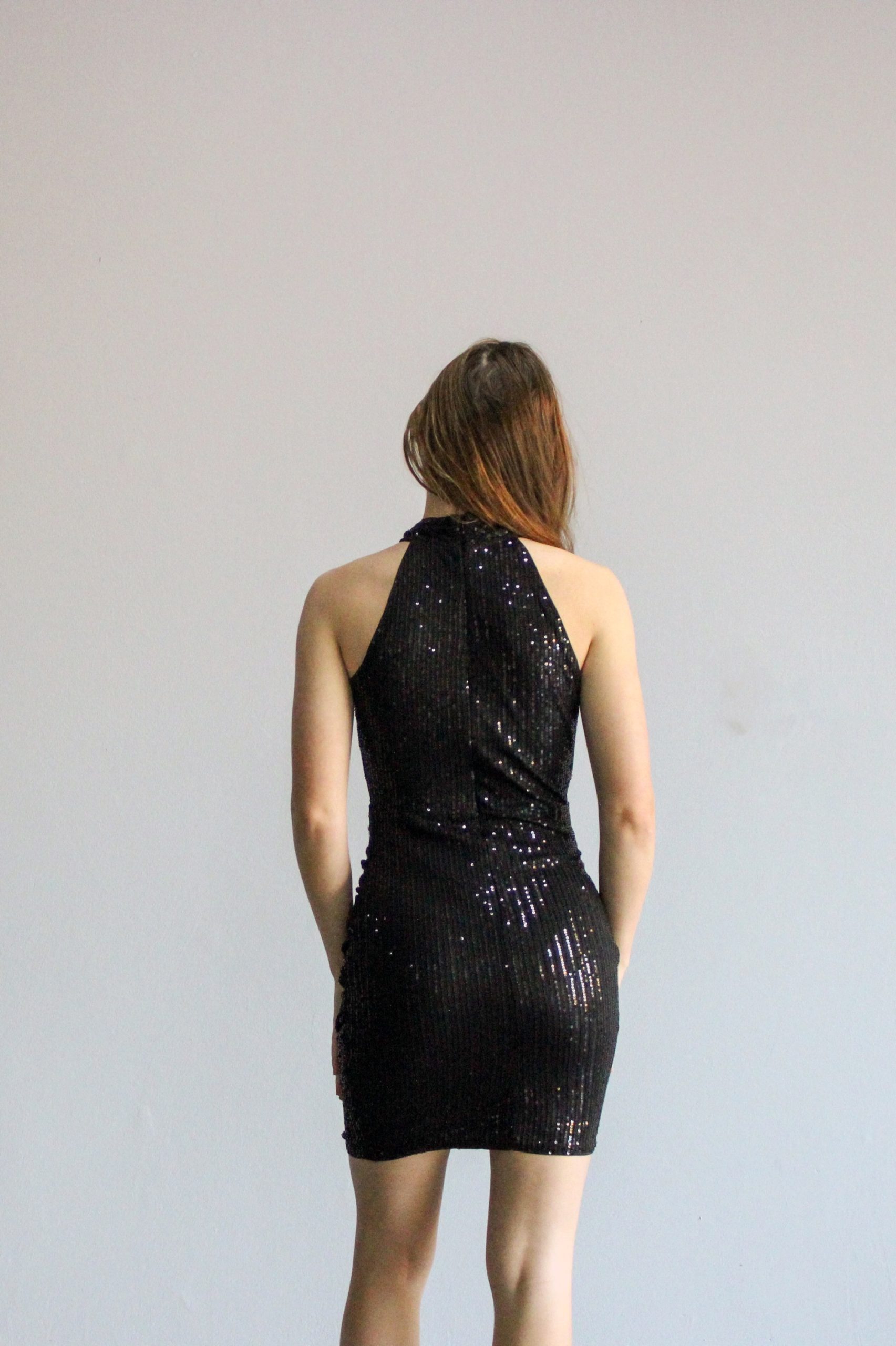 **Black Sequined Mini Dress**