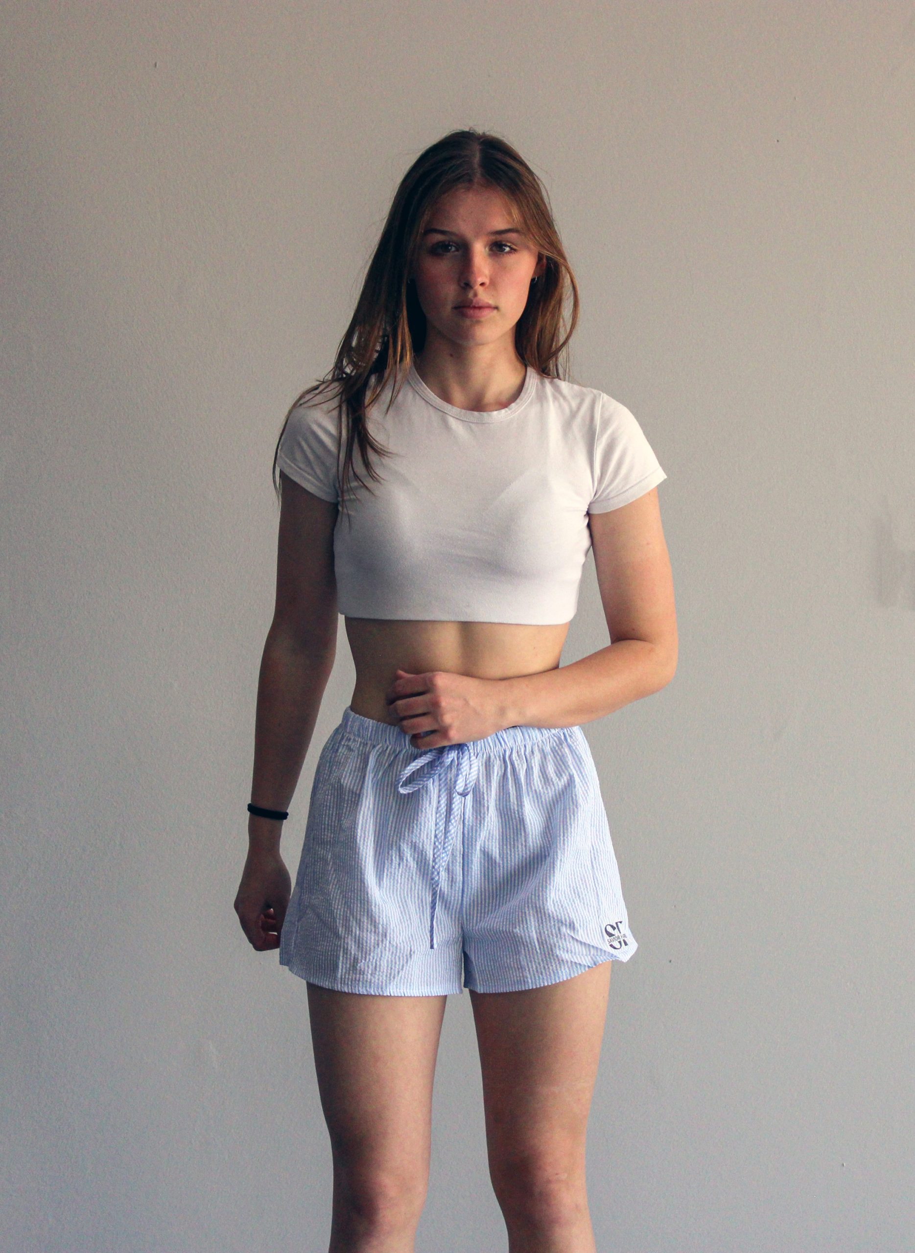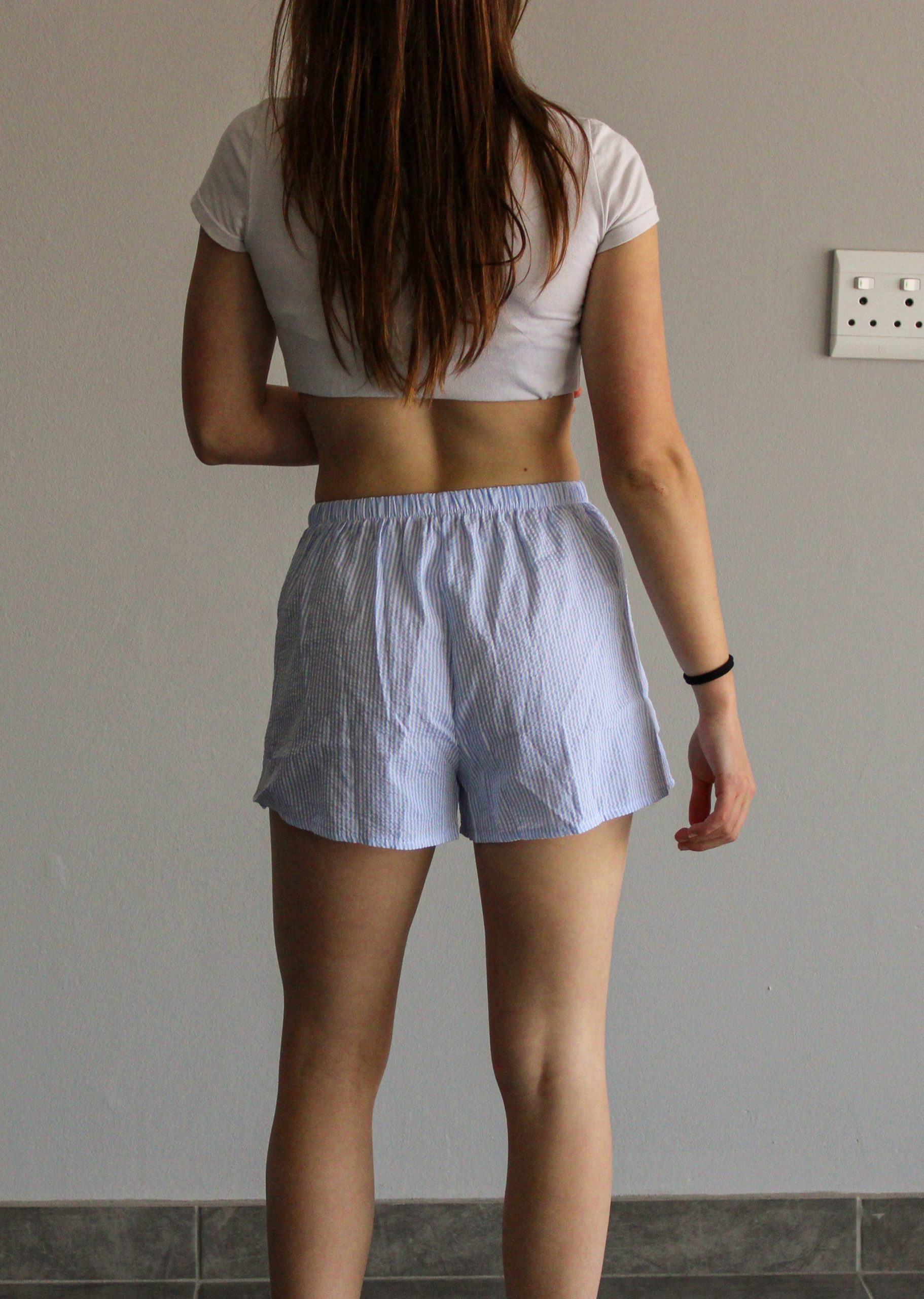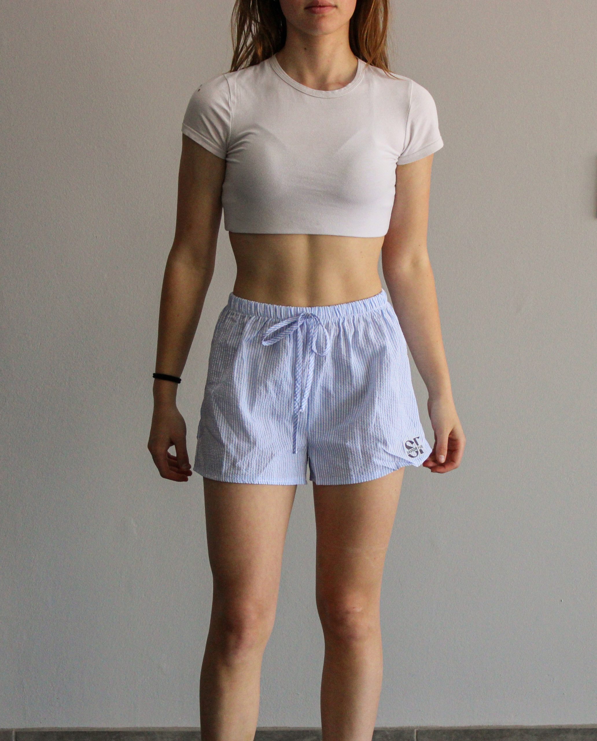 These light blue striped drawstring shorts are the perfect blend of comfort and style for warm-weather days. Crafted from a soft, breathable fabric, they feature a relaxed fit and an elastic waistband with an adjustable drawstring for a customizable fit. The classic light blue color, paired with subtle white stripes, adds a fresh and playful touch to your casual wardrobe. Whether you’re lounging at home, running errands, or enjoying a day out, these shorts offer effortless style and all-day comfort. Pair them with a casual tee or tank for an easy, laid-back look.